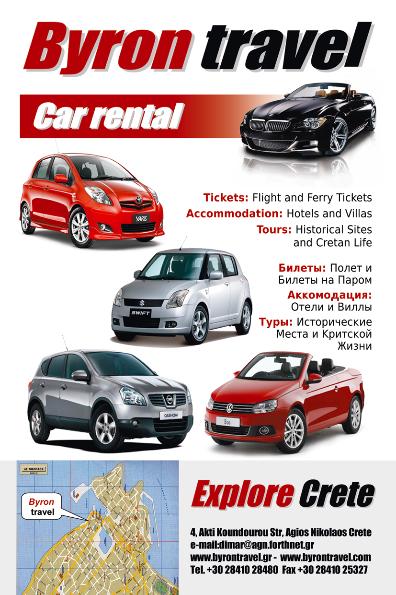 customer tabsΕπικοινωνία Η εταιρεία ενοικιάσεων αυτοκίνητων BYRON ιδρύθηκε το 1971 και εδρεύει στον Άγιο Νικόλαο.Είμαστε σε θέση μέσω των συνεργατών μας να προσφέρουμε τις υπηρεσίες μας όχι μόνο στην Κρήτη αλλά και σε όλο τον κόσμο. τα αυτοκίνητα μας ανανεώνονται συνεχώς και είμαστε υπερήφανοι που μπορούμε να ικανοποιήσουμε και τους πιο απαιτητικούς πελάτες μας. Διαθέτουμε ένα υψηλών προδιαγραφών πρόγραμμα συντήρησης των οχημάτων μας το οποίο εξασφαλίζει την άριστη κατάσταση τους.Οι ενοικιάσεις των αυτοκίνητων μας παρέχονται με μικτή ασφάλεια και εικοσιτετράωρη οδική βοήθεια.Οι ενοικιάσεις μας σε συνδυασμό με το γραφείο ταξιδιών δίνουν το πλεονέκτημα στο προσωπικό μας να παρέχει στους πελάτες μας επιπρόσθετες πληροφορίες και υπηρεσίες για να κάνουν τη διαμονή τους στην Κρήτη πιο απολαυστική και ευχάριστη. Το ταξιδιωτικό γραφείο Byron ιδρύθηκε το 1987.Για τη συμπλήρωση των υπηρεσιών των ενοικιάσεων αυτοκίνητων έχουμε αναπτύξει έναν πολύ προσωπικό και αποδοτικό τρόπο λειτουργίας ώστε να εξασφαλίζουμε όσο το δυνατόν καλύτερες και πιο ποιοτικές υπηρεσίες στους πελάτες μας. Για πάνω από είκοσι χρόνια αναπτυσσόμαστε και λειτουργούμε ακόμη με το ίδιο πάθος και ήθος όπως και στην αρχή.Προσφέρουμε πλήρεις και ανταγωνιστικές υπηρεσίες στα μέτρα των πελατών μας.Οι υπηρεσίες που προσφέρουμε είναι οι ακόλουθες:- Ταξίδια στο εσωτερικό και στο εξωτερικό- Εισιτήρια αεροπορικά και ακτοπλοϊκά.- Ενοικιάσεις αυτοκίνητων σε όλο τον κόσμο- Κρατήσεις σε διαμερισμάτων και ξενοδοχείων σε όλο τον κόσμο- Οργάνωση ομαδικών και μεμονωμένων ταξιδιών- Εκδρομές στην Κρήτη με λεωφορεία και πλοία- Εξειδικευμένα ταξίδια (γαμήλια κ.λ.π.) Ενοικιάσεις ΑυτοκινήτωνΤουρισμόςΑκτή Κούνδουρου Ιωσήφ 4, Άγιος Νικόλαος, ΛασίθιΑΓΙΟΣ ΝΙΚΟΛΑΟΣ ΛΑΣΙΘΙΟΥΛΑΣΙΘΙΚΡΗΤΗ 2841024452 28410284802841025327dimar@agn.forthnet.grwww.byrontravel.comwww.byrontravel.gr Το προτείνω (έχει προταθεί 0 φορές) ΦωτογραφίεςFacebook LikeShare on FacebookTweet Widget